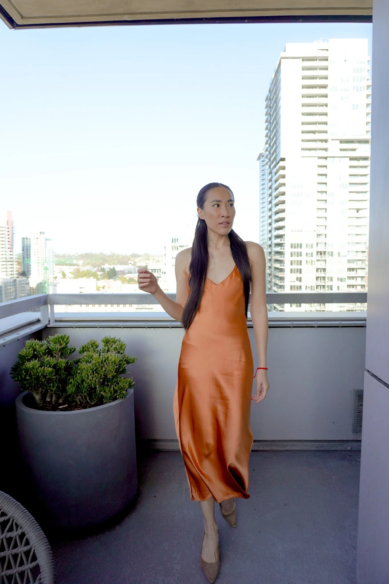 Scott and I last minute planned a less than 24 hour trip to Downtown San Diego with Lucky for our 5 year wedding anniversary. We had a dinner reservation to celebrate, and I didn’t want to buy a new dress or outfit, so I pulled out this silk slip dress from Catherine Gee. There’s a black silk slip skirt that I absolutely love from this designer as well.
